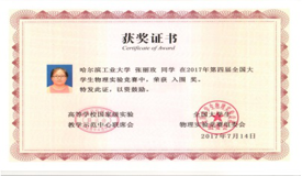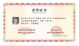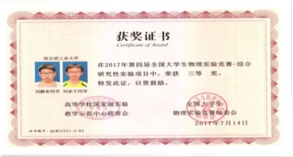 2017年7月,由高等学校国家级实验教学示范中心联席会主办的“第四届全国大学生物理实验竞赛” 在南京大学举行。哈工大物理系组队参加了综合研究类和基础类的全部比赛项目,获得综合研究类实验比赛三等奖。