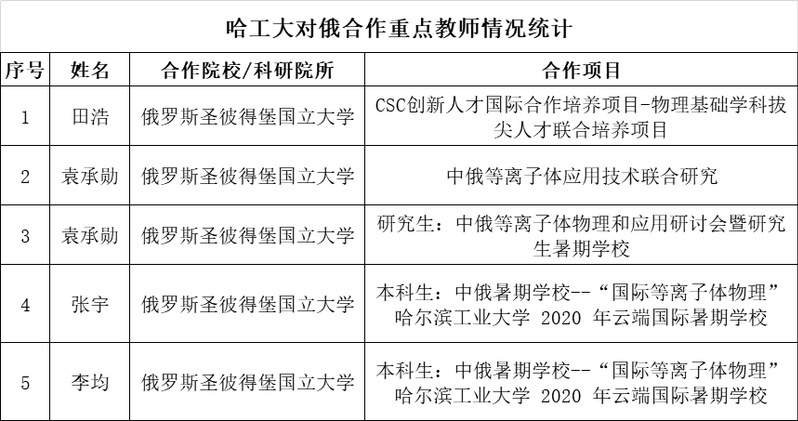 哈工大对俄合作重点教师情况统计
