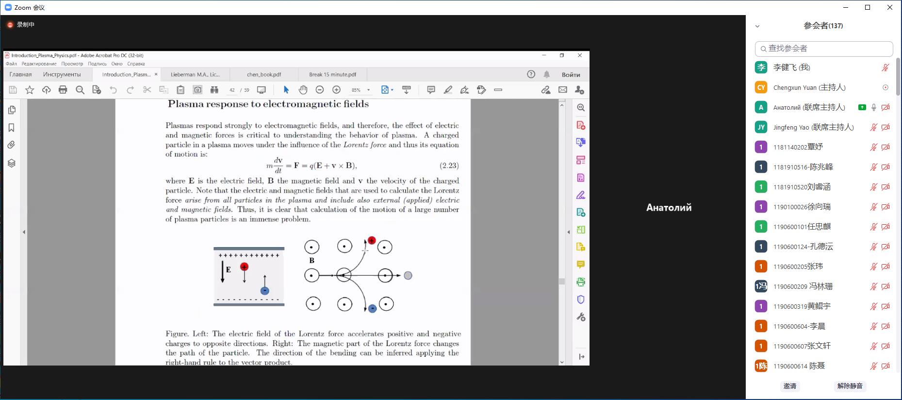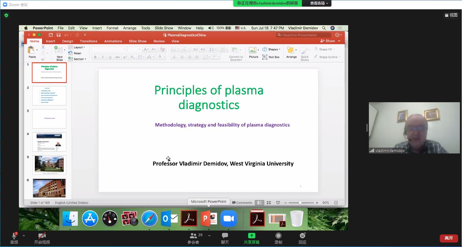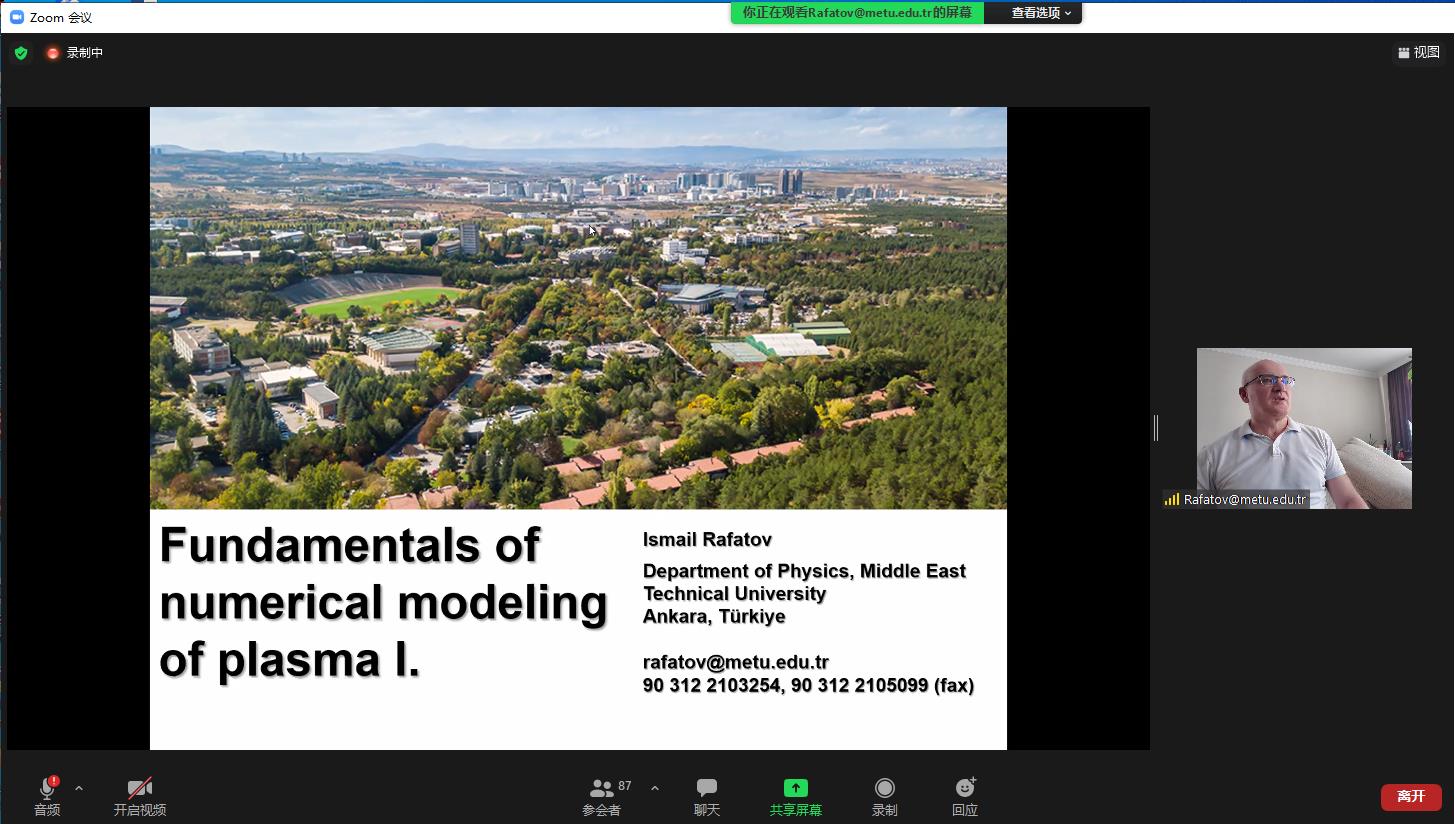 本次暑期学校时间为2021717日至722日,每日分上、下午两个时段为学生安排教学内容,邀请了等离子体领域的中俄专家通过课程和讲座两种方式来介绍等离子体物理基础知识与技术应用、前沿进展、研究热点和未来发展方向。其中三门核心课程:等离子体物理简介(8学时)、等离子体诊断原理(8学时)、等离子体数值模拟基础(8学时),分别由国际知名等离子体放电专家、圣彼得堡国立大学A. Kudryavtsev教授,等离子体诊断技术专家、美国西弗吉尼亚大学V. Demidov教授讲授,等离子体数值模拟专家、中东科技大学I. Rafatov教授。同时本次暑期学校共安排了8次等离子体物理前沿进展讲座(共16学时),分别由国内外等离子体物理领域知名研究专家与学者进行讲授,包括国内等离子体领域权威、我校大学科装置首席科学家王晓钢教授,清华大学工程物理系李和平研究员,中国电子科技集团国家级重点实验室创新团队学术带头人徐彬研究员,国际著名低温等离子体物理专家、俄罗斯自然科学院院士、莫斯科国立大学V. L. Bychkov教授哈尔滨工业大学国家级青年人才聂秋月教授,国家引进人才计划青年项目获得者朱悉铭教授等。各位专家在等离子体物理授课方面经验丰富,结合科研热点深入浅出,让每名学生都有收获有进步。中英文结合的授课方式让学生易接受好理解,云端交流拉近了学生与专家、学生与学生之间的距离,获得学生一致的肯定与好评。