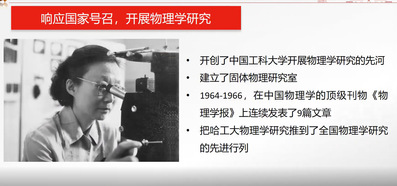 于1997年到1999年担任物理系第二任系主任的姜铃珍教授仔细回忆了洪晶先生积极响应国家号召建立固体物理实验室以及先生在教学基础上做前沿物理研究等方面感人故事。在教育教学方面,先生在全国率先探索适合新中国国情工科大学的物理教育模式,相关教学经验文章1954年发表在物理通报上,在全国工科物理教育中产生了极大影响,也标志着哈工大工科物理教育工作步入全国先进行列。分享的最后,姜老师深情的说:“先生有优雅的学者风范和高尚的人格魅力,他对祖国无限热爱,对物理事业无限忠诚,为我们留下了宝贵的财富。我们要学习先生的奋斗精神、进取精神、团结精神、协作精神、创新精神,继续为哈工大物理学科和祖国教育事业做出贡献!”