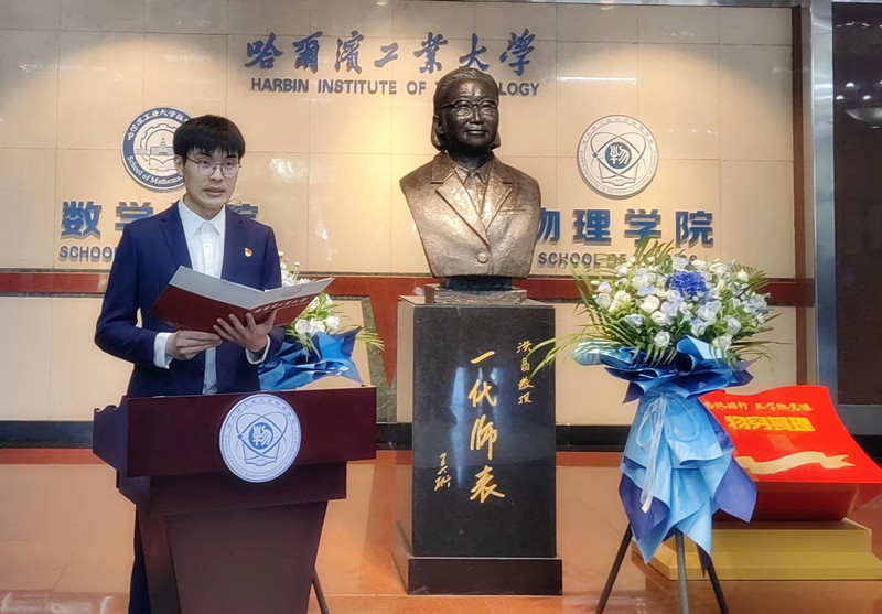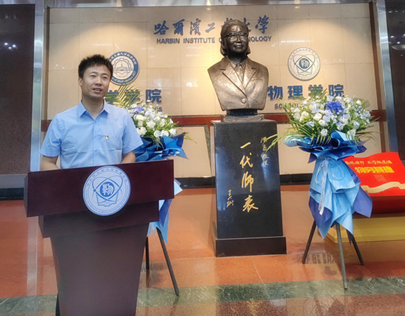 新入职教师代表李立教授在发言中真切表达了对洪晶先生的崇高敬意与深切缅怀,郑重感谢入职以来学院领导和同事给予的关心帮助,倍感温暖的同时也深刻认识到教书育人的重任在肩。他代表全体新入职教师表示要充分发扬哈工大精神、“八百壮士”精神,不忘初心、牢记使命,格物致理,厚德笃行,坚持立德树人、为国育才的使命,争做新时期追求卓越的哈工大人、哈工大物理人。