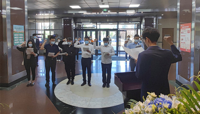 仪式的最后,新入职教职工在洪晶先生塑像前庄严宣誓。