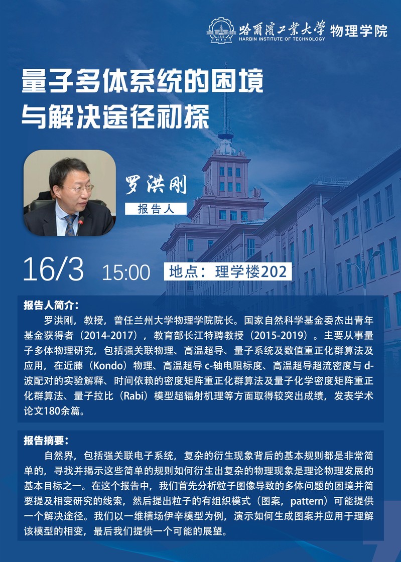 量子多体系统的困境与解决途径初探——讲座通知