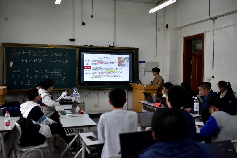 开幕式后,进行了各队的风采展示。本次校内选拔赛共有来自全校各院系的81名同学参赛。风采展示后,比赛分别在正心楼303403404406四个教室同时展开。整个比赛持续一天,共进行3轮比赛、每轮4个阶段。比赛中,参赛队伍围绕本届CUPT比赛中的题目,从理论和实验、仿真等方面进行讲述,并与其他队伍展开讨论,评委对同学们的报告进行了点评和指导。