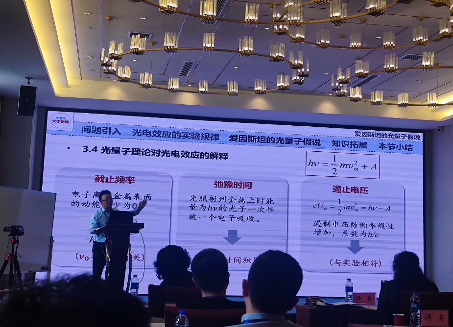 据悉,该教学比赛对选手的知识储备、教学理念、教学方法、临场应变等多方面的能力提出综合要求,非常考验青年教师教学基本功。本次竞赛周可雅老师讲授的题目是“爱因斯坦的光量子假说”,教学展示环节获得与会评委专家和观摩教师的一致认可。周可雅老师在教学育人方面投入了极大热忱和不懈努力,持续开展《大学物理》教学研究,深挖课程思政素材并融入每一堂课,切实贯彻了“立德树人”根本任务和“以学生发展为中心”的教育理念。除本项赛事外,他在过去的两年时间里参加了哈工大“卓越杯”青年教学竞赛、哈工大课程思政教学竞赛、黑龙江省高校青年教师教学竞赛、黑龙江省课程思政教学竞赛、全国高校教师教学创新大赛省赛、全国高校青年教师教学竞赛等多个教学竞赛,累计在竞赛中讲授了13个完全不同的教学节段,充分展示了他先进的教学理念、教学方法和教学能力,获多个国家级、地区级、省级和校级荣誉。他还申请了个人微信公众号“可爱的大学物理”,坚持在公众号分享授课讲义、教学过程、教学反思、学情分析、阶段总结和课外拓展知识。