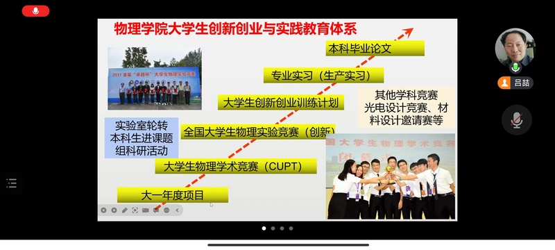 针对2023年秋季学期即将开展的大学生创新创业训练计划项目的申报要求、项目选题、实施过程及学校政策等内容,于2023年9月28日晚在腾讯会议召开创新创业讲坛暨大学生创新创业项目宣讲会,主讲人为吕喆教授。