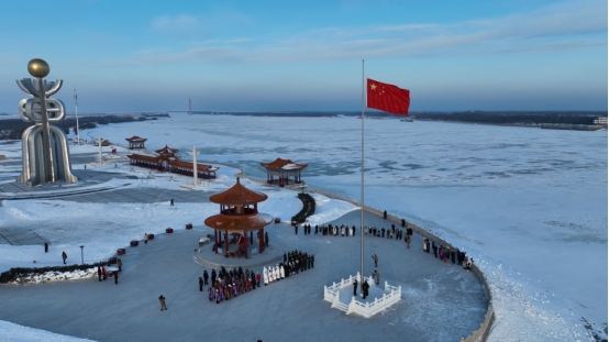 为引导学生厚植家国情怀,感悟祖国边陲守土热血,争做国土守护者与幸福家园建设者,“青春界碑,国土边防”祖国东极卫国戍边实践团成员来到祖国陆地最东端——抚远,开展社会实践活动。2025年1月1日,实践团成员首先参加升旗仪式,迎接新年第一缕朝阳,随后实践团成员走进东极哨所体会戍边艰辛,与官兵一起踏雪巡逻、体验军事实训科目,在实践过程中,实践团成员还感受当地民俗文化,并联合红军小学开展“爱国主义教育课”。在哈工大师生、哨所战士以及驻地群众的“梦幻联动”中,同学们的爱国情怀更加深厚、报国志更加坚定。