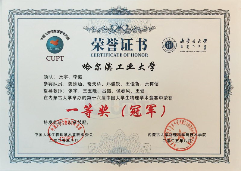 20258月,第十六届中国大学生物理学术竞赛(CUPT)在学术氛围与竞技激情的交织中圆满收官。来自全国66所高校的67支精英队伍齐聚赛场,围绕17个兼具理论深度与实践挑战的物理问题展开智慧碰撞。哈尔滨工业大学本部、威海校区、深圳校区三支代表队凭借深厚的学术积淀、创新的思维模式与默契的团队协作,在强手如林的竞赛中脱颖而出,共斩获3项团体大奖和12项单项奖,以卓越表现续写哈工大在该项赛事中的荣耀传奇。